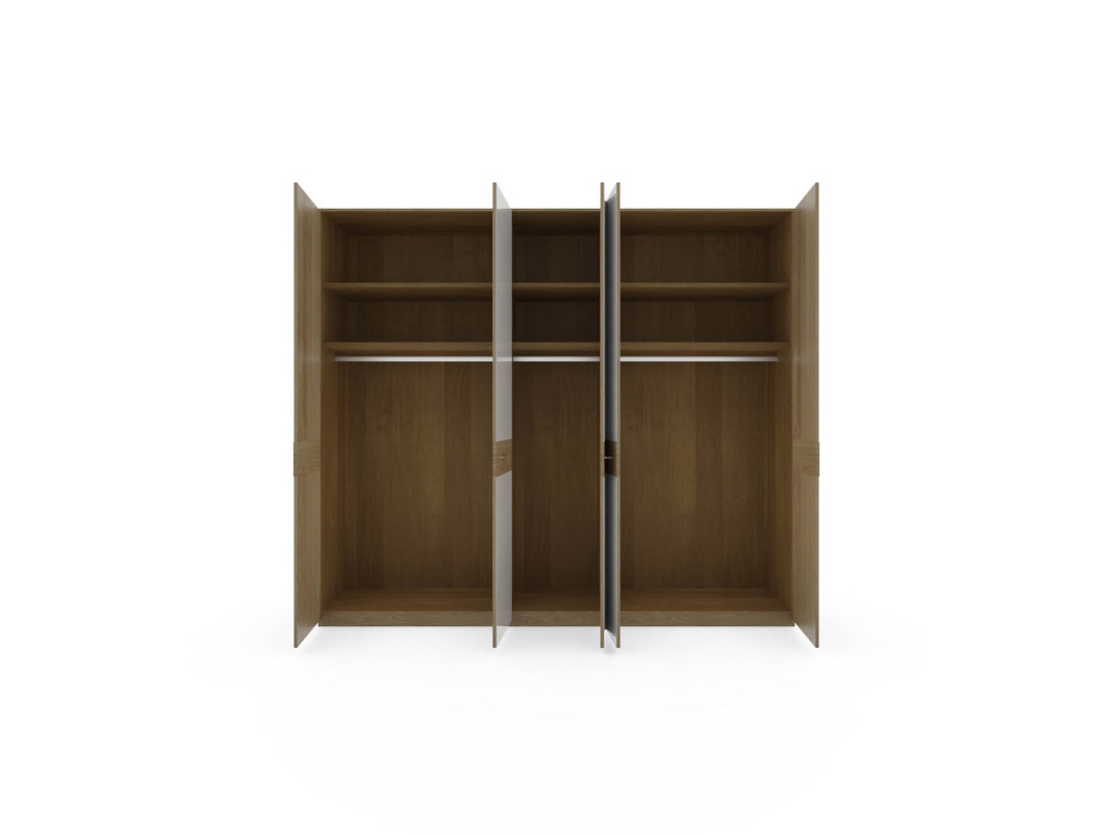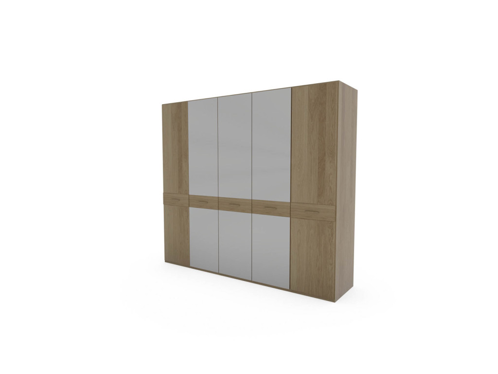 Drehtürenschrank, 5-türig, 3 Glastüren weiß, Querriegel in schlicht, BHT ca. 250/216/58 cm