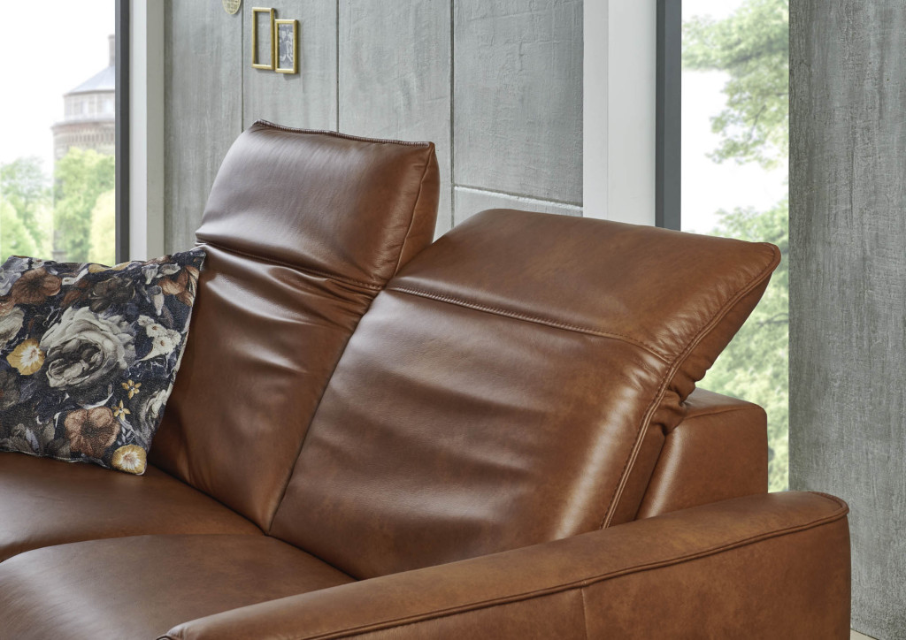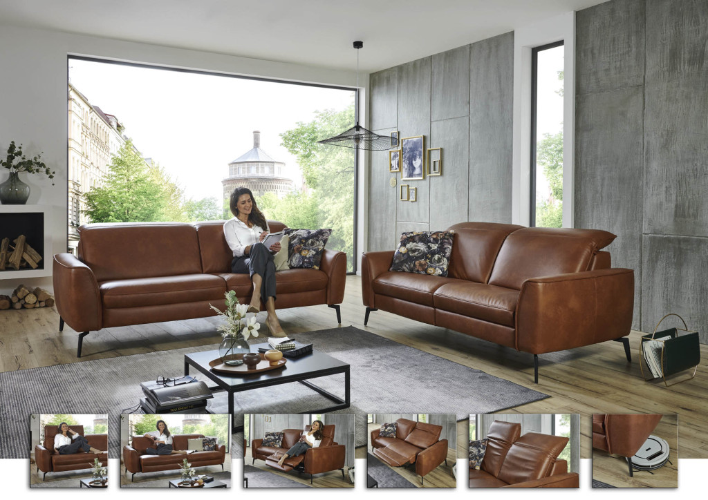 pigmentiertes Leder, Farbe cognac, Rücken Nessel, Sitz weich, Fuß schwarz, Sitzhöhe 48 cm, Sitztiefe 55 cm, bestehend aus:
