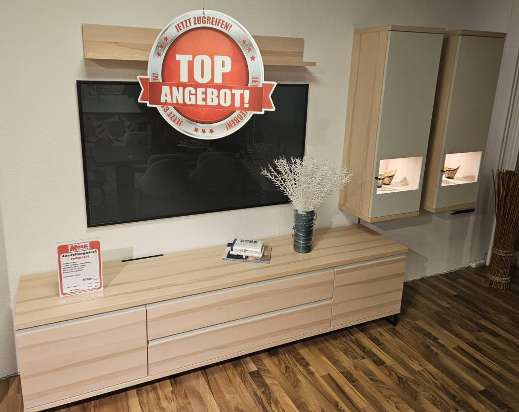 Bei uns finden Sie ganzjährig günstige Markenmöbel. Um Ihr Wohnglück komplett zu machen, haben wir viele wechselnde Angebote. Ob Ecksofa, Einbauküche oder Esszimmertisch – stöbern Sie doch einmal durch unsere aktuellen Abverkaufsstücke und entdecken Sie Qualitätsmöbel zu kleinen Preisen!